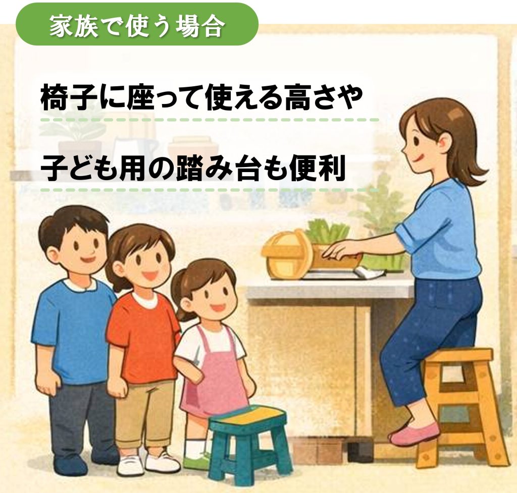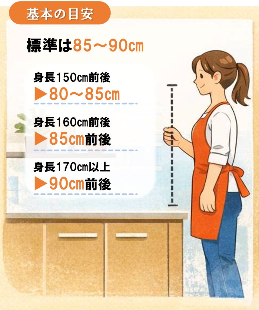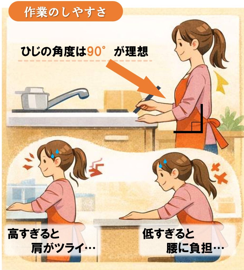 調理台は、ひじの角度が90°になる高さがベストといわれています💡📏